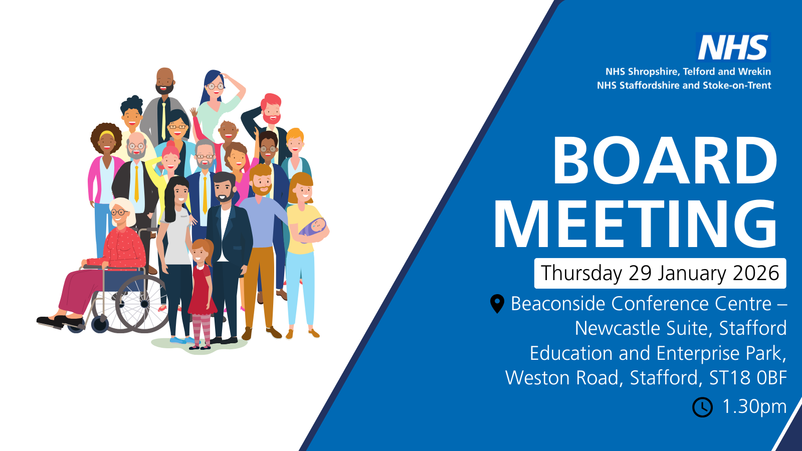 NHS Shropshire, Telford and Wrekin will hold its first virtual board meeting in common with NHS Staffordshire and Stoke-on-Trent as part of its new cluster arrangements on Thursday 29 January at 1:30pm.