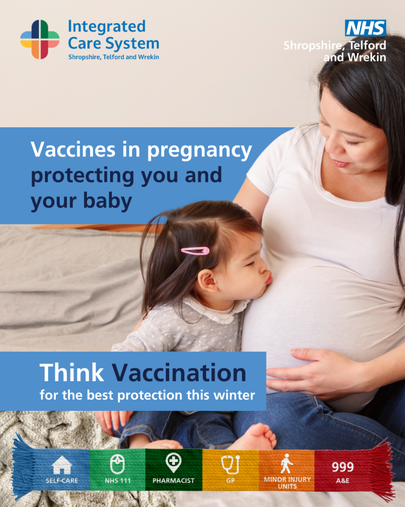 NHS Shropshire, Telford and Wrekin health leaders are urging all pregnant women in the area to come forward and receive their free NHS vaccinations against flu, whooping cough and RSV (respiratory syncytial virus) to help protect themselves and their babies.